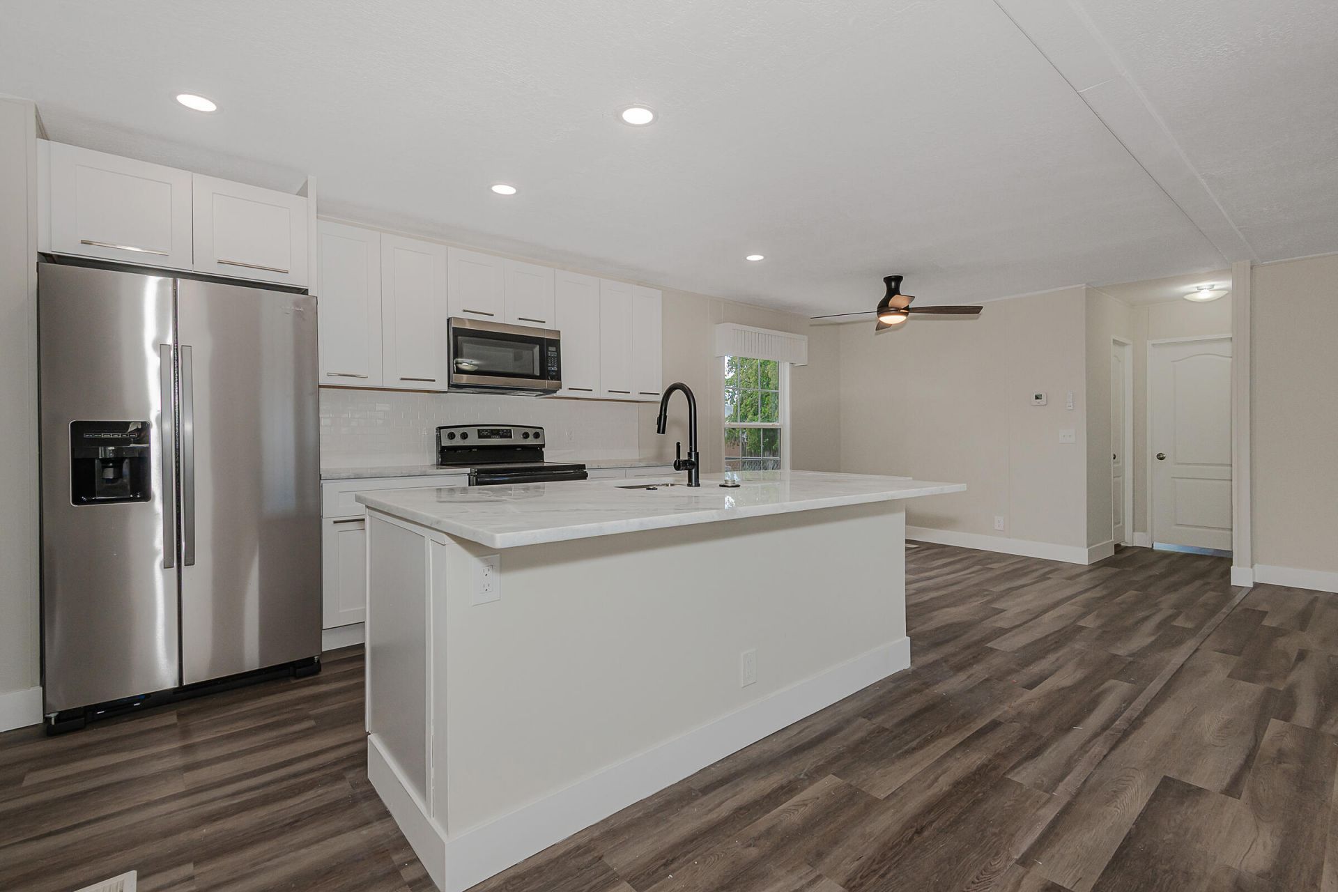 This beautifully redone, newer (2018) doublewide manufactured home features 3 bedrooms and 2 bathrooms. NO HOA, you own the land! Featuring a brand new shingle roof, new stainless steel appliances, stone kitchen countertops, luxury vinyl plank flooring throughout, new lighting/ plumbing fixtures, and two renewed bathrooms, this one is ready to move in! Situated on a small canal at the end of a quiet cul-de-sac street, this home also features a fenced in backyard. Come see it today!
