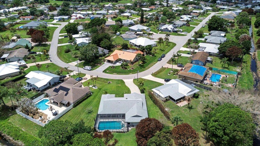 Welcome to this exceptionally maintained property offering space, privacy, and thoughtful updates. With no HOA, located in Sandpiper Bay in Port St. Lucie, this home is situated on an oversized lot. The property is surrounded by mature landscaping and fruit trees, where beautiful wildlife can often be seen, creating a serene and lush environment. Inside, you'll find a desirable open split floor plan with vaulted ceilings that enhance the spacious, airy feel of the home. Featuring three spacious bedrooms and two well-appointed bathrooms, this layout is ideal for both everyday living and entertaining. With double glass sliding doors in most rooms that open to the spacious patio/pool, you will feel the natural indoor-outdoor flow. Step outside to enjoy the expansive oversized patio, perfect for gatherings, overlooking a large sparkling pool and relaxing spa. The backyard is a true highlight-private, green, and peaceful, with no homes or roads behind, offering a rare sense of seclusion. The two-car garage includes a unique air-conditioned tool room for climate-controlled storage and workspace. Additional features include a convenient Electrolux central vacuum system and numerous recent upgrades for peace of mind: Roof replaced in 2022, Gutters installed in 2022, Window screens updated in 2023, Pool pump replaced in 2022, Pool screen enclosure replaced in 2019, Main AC replaced in 2026, Tankless water heater replaced in 2021, Range replaced in 2022, Dishwasher replaced in 2023. Come see this well maintained home that combines comfort, functionality, and privacy-ready for its next owner to make their own.