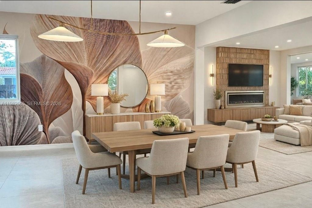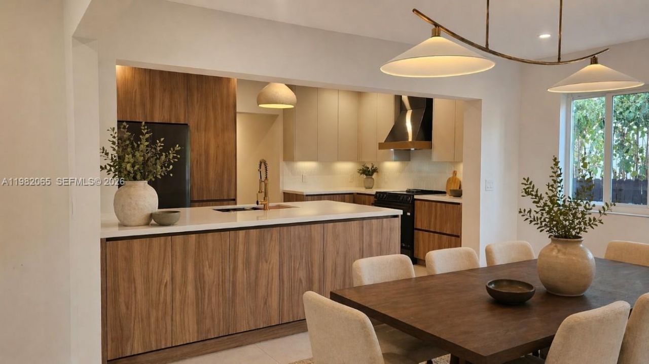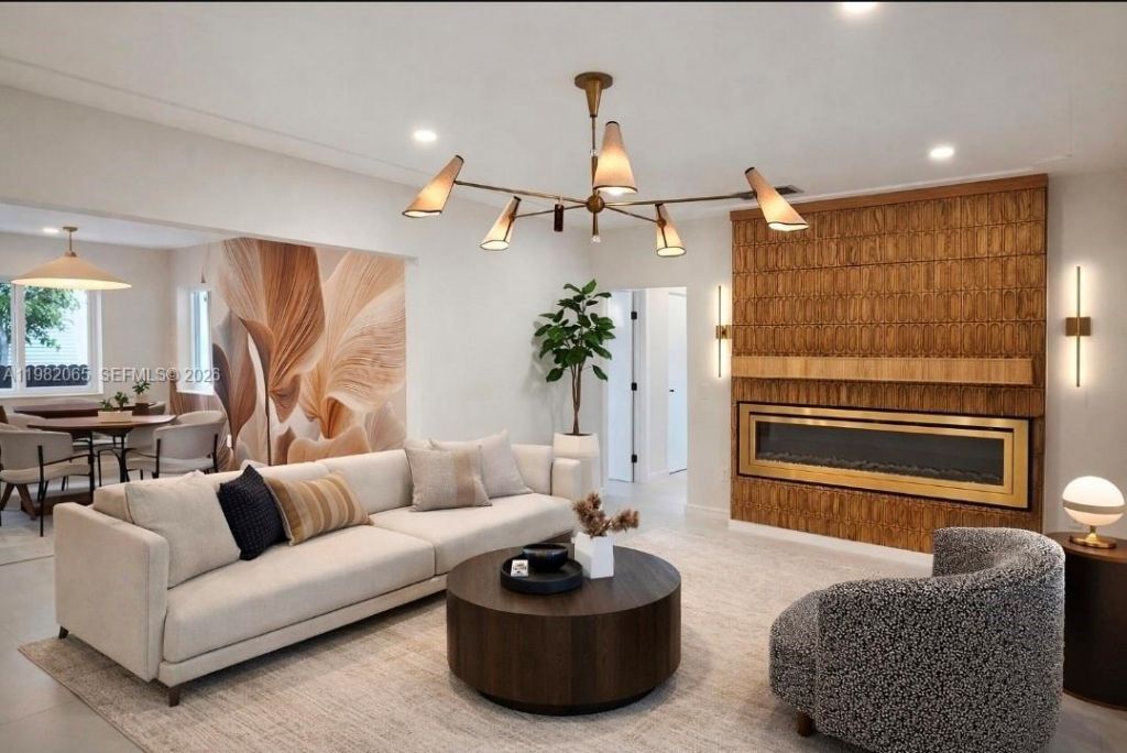 This single family home is in one of the most sought after neighborhoods, Silverbluff which is located north of Coconut Grove and south of Shenandoah. This is a beautifully renovated mid-century modern home that was tastefully done in an organic modern feel. The home is a 4 bedroom 3 bathroom home that is perfectly situated with 2 primary suites perfect for in-law, nanny, guest, or teen quarters. The living room has a custom designed electric fireplace that compliments the kitchen cabinets and kitchen backsplash tile with a gorgeous dining room mural that combines all the textures with the warmth of a home but the appeal of a modern condo. There is a designated room perfect for a theatre, gaming, family room, or childrens play area. Part of the home can be easily separated to make a designated full in-law or a massive primary quarters. The home sits on a corner lot which provides two designated fenced in yard spaces. One space is perfectly designed for outdoor entertaining with wood decking tiles and string lights. The exterior does have a well system and pump for sprinklers, extra parking in the rear of the home, and exterior lighting. This home does have a full single car garage that can easily be converted into more storage space, flex zone, or a full gym. This is a must see home that has been tastefully done to meet any buyers needs.