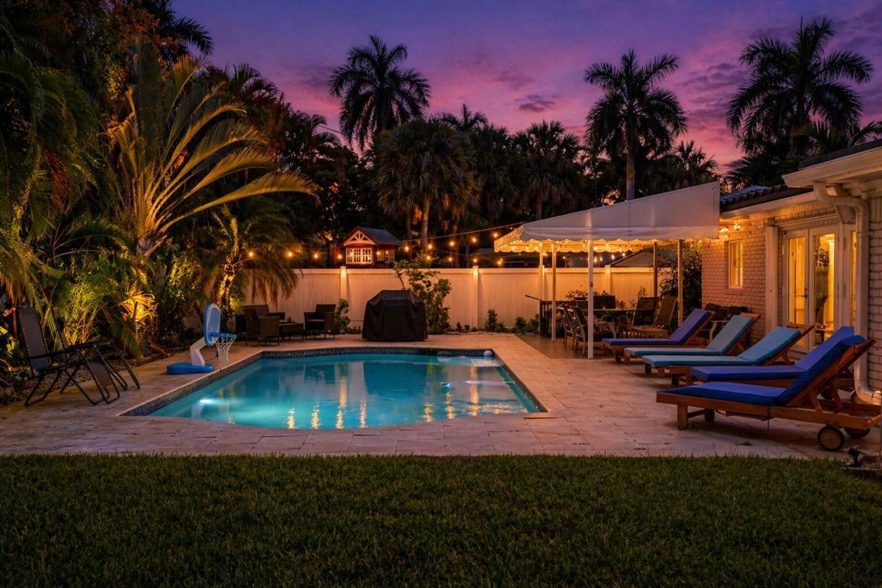 Exquisite move-in ready beach-walkable home in Dolphin Isles. Bright natural light highlights timeless charm with modern updates throughout. Fabulous private backyard features a large heated sparkling pool, fire pit, and borders Hugh Taylor Birch State Park, offering rare privacy and tranquil views. Insect misting system and sprinkler system provide added comfort and convenience. Ideally located in one of Fort Lauderdale's most desirable beachside communities. Luxury, privacy, and relaxation just moments from the beach, dining, and shopping. Pet considered. Short-term available, 3-month minimum at $9,000/month including utilities.