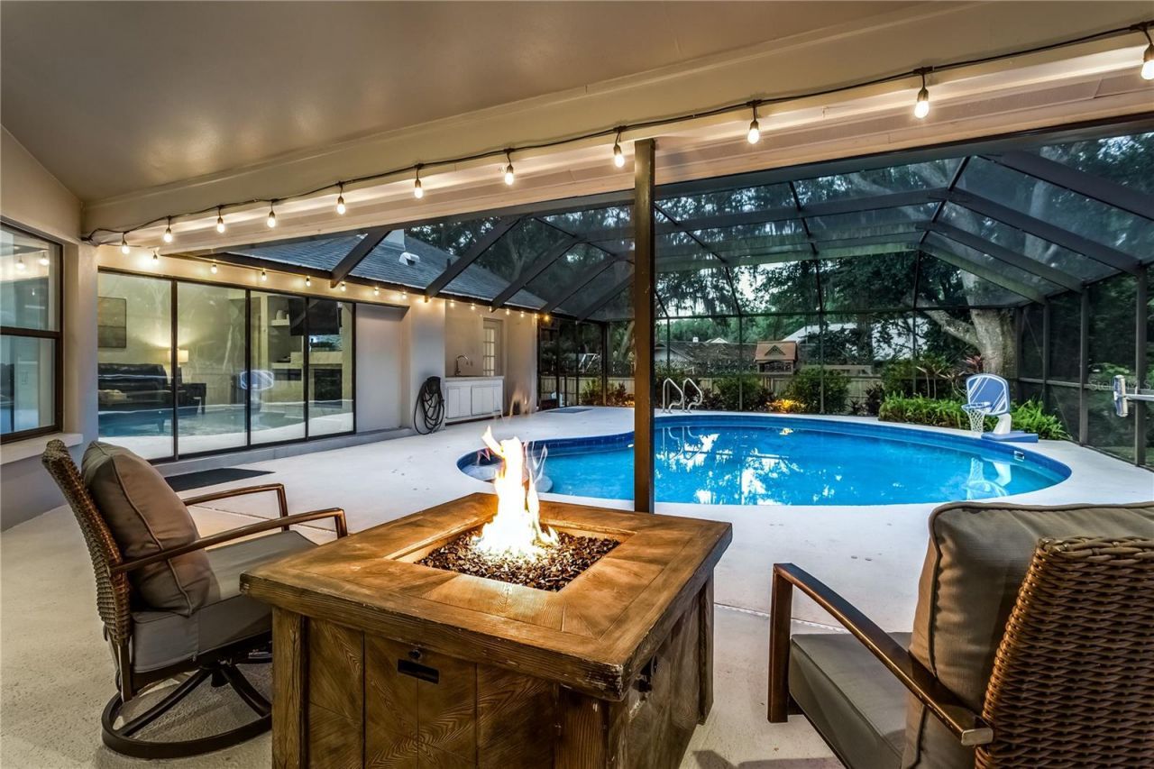 VA Assumable Mortgage at 2.75% interest rate for VA Buyers! Traditional Elegance in the mature, tree-lined neighborhood of Belle Meade. This is a rare opportunity to own a gorgeous Author Rutenberg .35-acre estate (90 x 169 lot) on a low-traffic cul-de-sac street. This spectacular, turn-key 4 bedroom + 3 bath pool home has over $175,000 in upgrades since 2020! The outdoor oasis feels like a park with a 1,450 foot screened-in lanai with a saltwater solar heated pool, an outdoor kitchen, a huge backyard with an outdoor fire pit area and playground. The landscaping was beautifully upgraded to include outdoor lighting, a custom expansive driveway with Flagstone pavers, and a fully fenced yard. The foyer entryway opens into a formal dining room and formal living room with luxury vinyl floors and cathedral ceilings. The Chef's kitchen showcases 42 wood cabinetry with Quartz counters and a tile backsplash, a large island with a mitered edge, a stainless-steel appliance package, and custom pantry. The kitchen opens into a second dining area plus a spacious family room with vaulted ceilings and a wood-burning fireplace with custom shelving. All of the living rooms have expansive sliding doors that pocket behind the wall, perfect for indoor-outdoor living. There are two wings that are adjacent to the living room. Each wing has a fully remodeled bathroom and the remaining guest bedrooms. The spacious primary suite has a sliding door that pockets behind the wall and offers views of the pool and backyard. The primary bathroom was beautifully remodeled in 2020 and highlights a double vanity with Quartz counters, an oversized shower with seamless glass, and a garden tub and a large walk-in closet with custom cabinetry. Additional Upgrades include: NEW Dimensional Shingle Roof 2020, NEW AC 2021-25, NEW Whole-house PEX Plumbing 2025, Hot Water Heater 2020, Luxury Vinyl Flooring 2026, Custom Kitchen 2020, Custom Closets & Pantry 2025, Whole Home CAT6 Wiring 2023, Wi-Fi Water Softener & Reverse Osmosis System, Smart Sprinkler System, NEW Driveway Pavers 2025, NEW Gutter System 2025, Exterior Paint 2020, Interior Paint 2020, Window Film 2020, Exterior Fence 2020, Pool System to include Solar Heater, pump, filter 2020-24, Three Remodeled Bathrooms 2020, Painted Pool Deck 2020, Custom Laundry Room with a front load Washer and Dryer 2025, and more. Located in the top rated Steinbrenner school district. Odessa offers a variety of shops, restaurants, parks, playgrounds, golf, and more. Easy access to the Veteran's, Airport, Downtown, & 45+ minutes to Clearwater/St. Pete beaches.